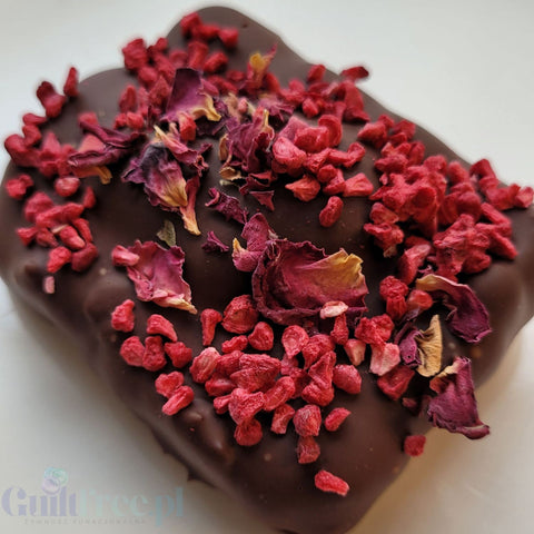 KoxBar bars are divided into those filled with mash, cream, mousse or fruit, those to which we add crunchy additives to the inside of the mash (nuts and/or cookies). As for the topping, which is the most caloric component of the bar, to meet your expectations we prepare bars without toppings, with half toppings (only on the top) and all covered with chocolate - we do not use ready-made chocolates or couvertures (excluding Ruby chocolate), as toppings we use sugar-free protein chocolate prepared in our manufactory, for the purpose of vegan bars we have even developed a novel recipe for vegan sugar-free protein chocolate, of which we are incredibly proud!