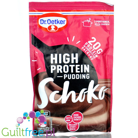 Additional information: Dr Oetker High Protein Pudding Schoko - instant dish, protein-enriched pudding prepared with milk, no added sugar, with sweeteners