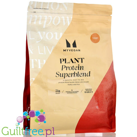 Additional information: MyProtein Plant Protein Superblend Carmel - protein supplement based on upcycled barley (a by-product of the brewing industry) with sweeteners