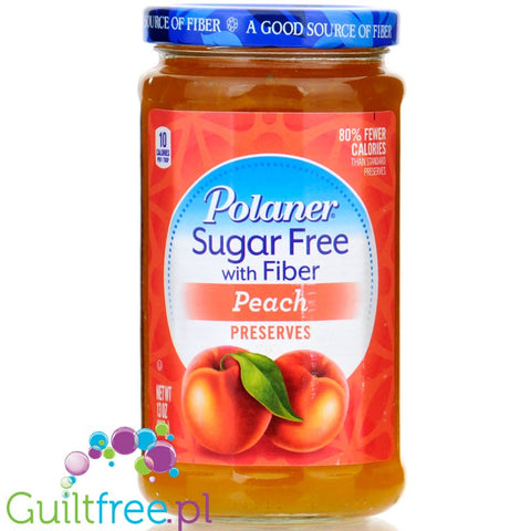 Additional information: Polaner Sugar Free with Fiber Peach Preserves - Sugar-free peach preserves, with sweeteners, reduced calories* * contains 80% less calories than Polaner grape jam sweetened with sugar