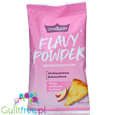 Informacje dodatkowe: GymQueen Flavy Powder Chunky Apfelkuchen - sproszkowany aromat spożywczy szarlotki z kawałkami maślanych ciasteczek, zawiera cukier i substancje słodzące