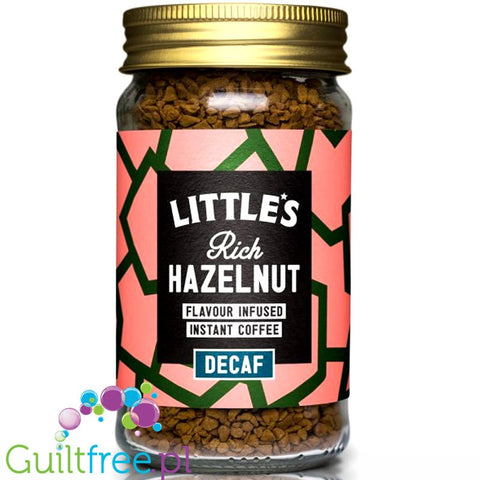 Informacje dodatkowe: Little's Decaf Rich Hazelnut Flavour Infused Instant Coffee - aromatyzowana bezkofeinowa kawa rozpuszczalna o smaku orzechów laskowych