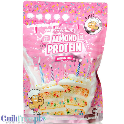 Macro Mike Almond Plant Protein, Birthday Cake - wegańska migdałowa odżywka białkowa bez glutenu, mleka i sukralozy