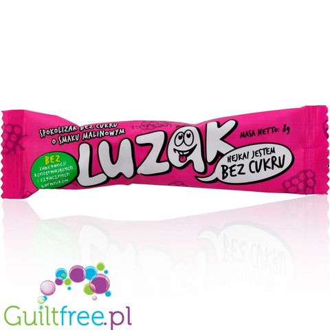 Informacje dodatkowe: Luzak lizak bez cukru o smaku malinowym, zawiera substancje słodzące