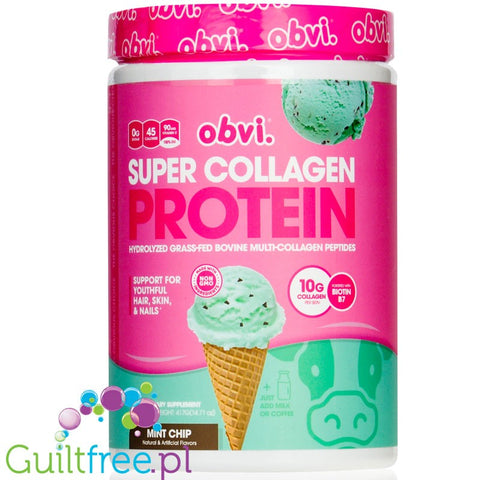 Obvi Super Collagen Protein Mint Chocolate Chip - 45kcal & 10g białka, keto kolagen bez cukru z witaminami i minerałami