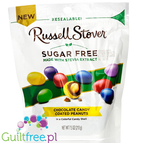 Zatopione w lukrowanej czekoladzie orzeszki Russel Stover Chocolate Candy Coated Peanuts nie zawierają ani grama cukru a są tak samo pyszne, tak samo mleczno-orzechowo-czekoladowe i mają tak samo chrupiące skorupki jak ich wysokocukrowy odpowiednik