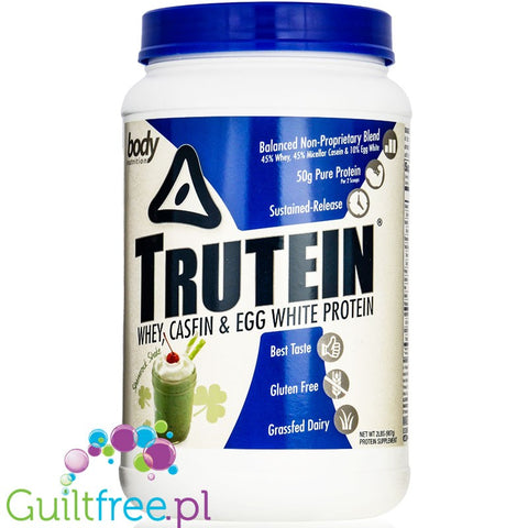 A jeśli takie nowinki kulinarne są dla Was lekką przesadą to polecamy mieszankę białkową o smaku wspomnianego tu shake’a. Body Nutrition Trutein - Shamrock Shake to najwyższej jakości mieszanka białek. Ma piękną zieloną barwę i niezwykły smak! Jej główną zaletą jest to, że zawiera trzy różne formy białka: serwatkę (45%), kazeinę micelarną (45%) i białko jaja (10%). Każda z nich ma inną szybkość wchłaniania. To oznacza, że ciało stopniowo nasyca się aminokwasami, które tak świetnie wpływają na masę mięśniową! Ponadto zastosowane produkty mleczne są najwyższej jakości, a sama mieszanka nie zawiera ani glutenu, ani cukru. To potężna dawka zdrowych protein! :)